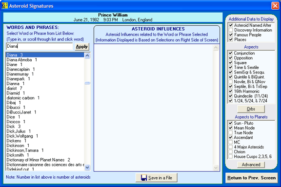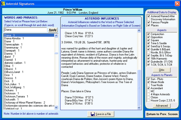 Just type the word, and Asteroid Signatures instantly identifies asteroids specially