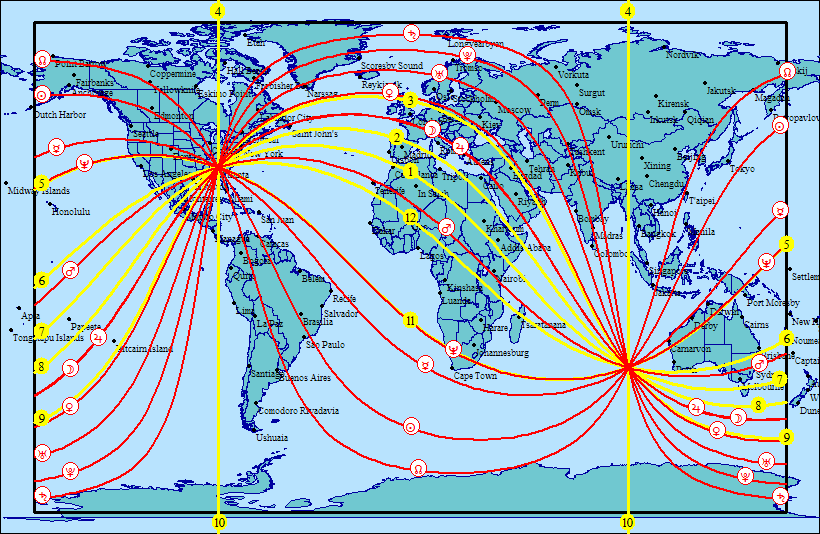 and the MC lines are drawn due north-south. The planet lines in a horizon map