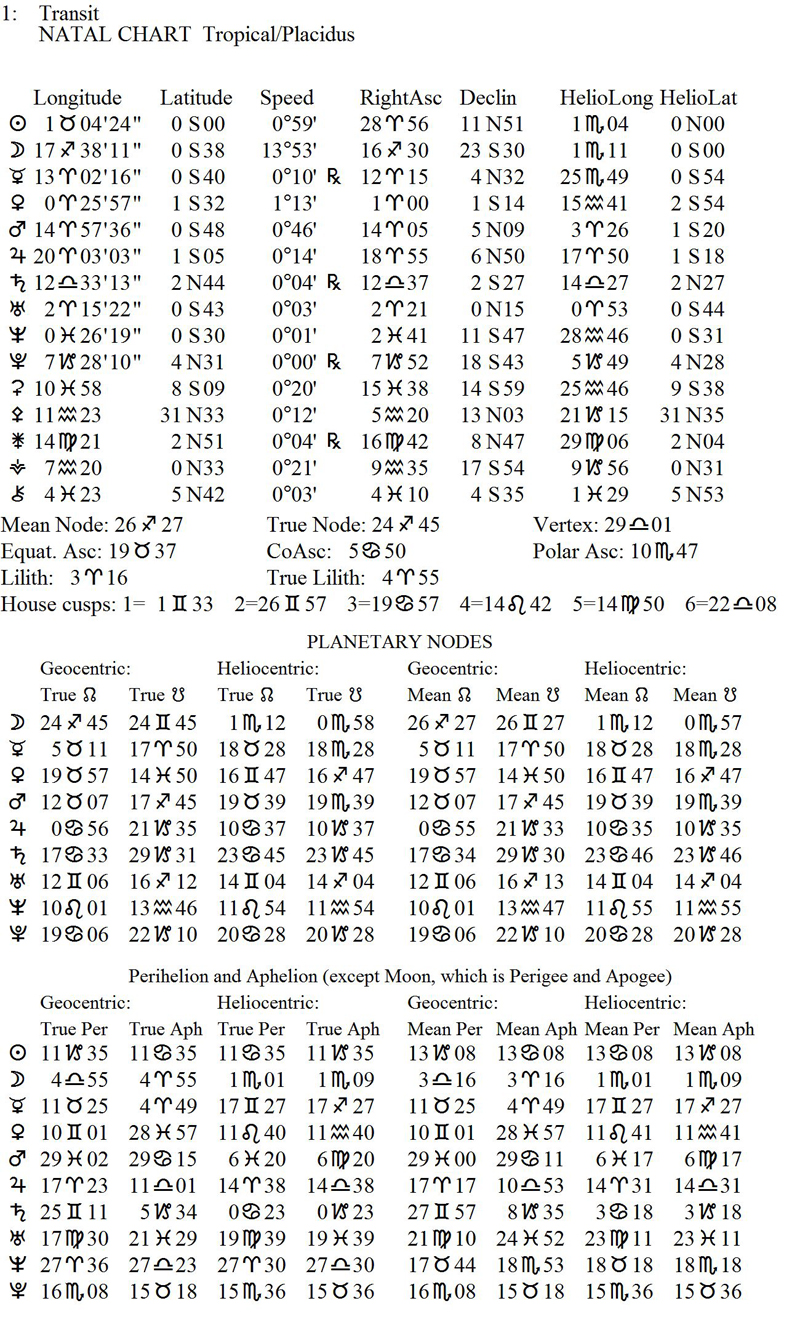LISTING: List of planet positions with planetary nodes, Perihelion and Aphelion, etc.