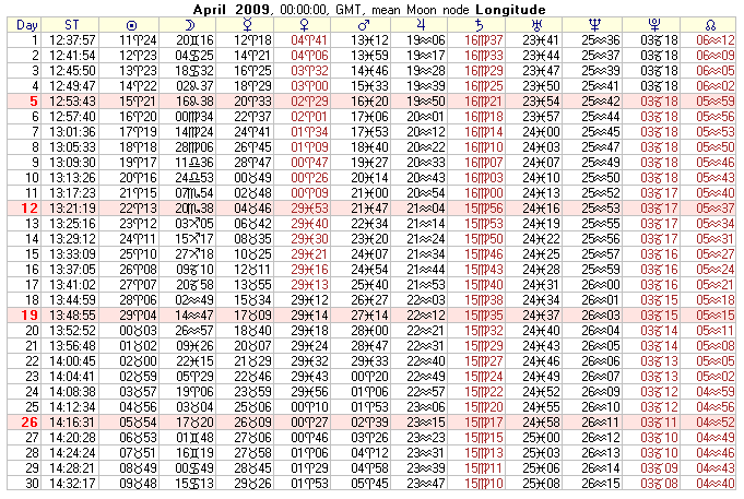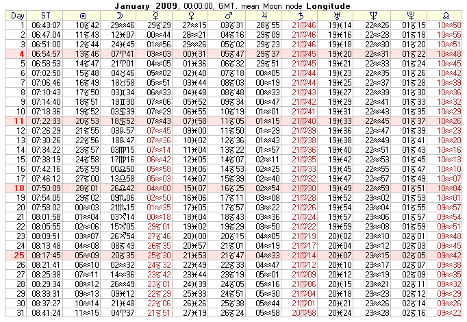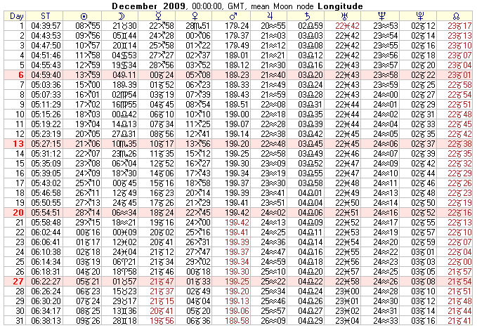 January to December 2009 Text Ephemeris created from Sirius