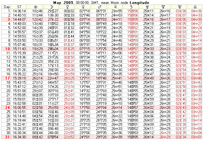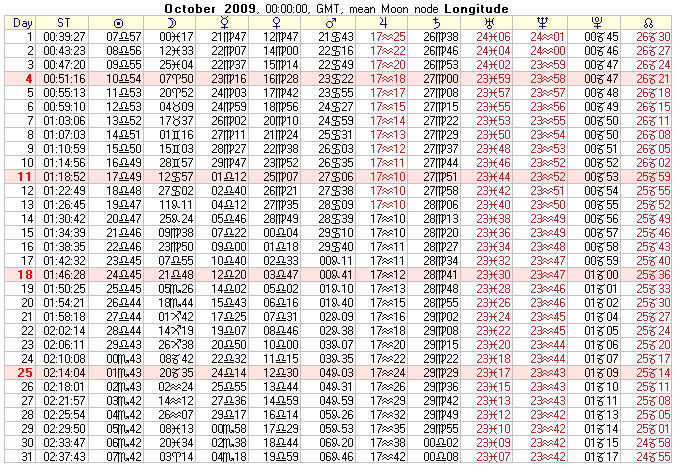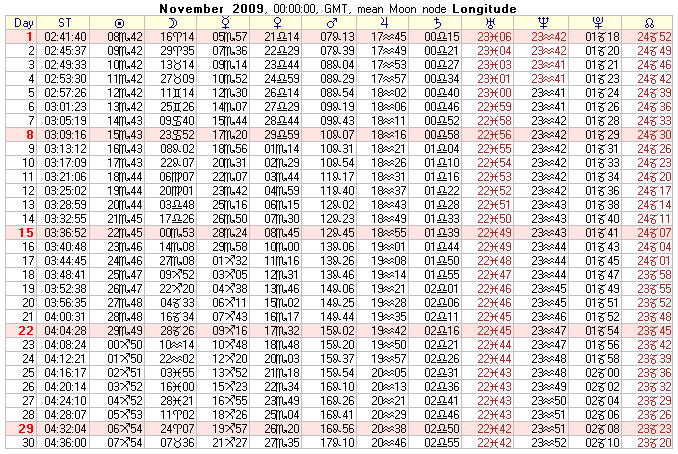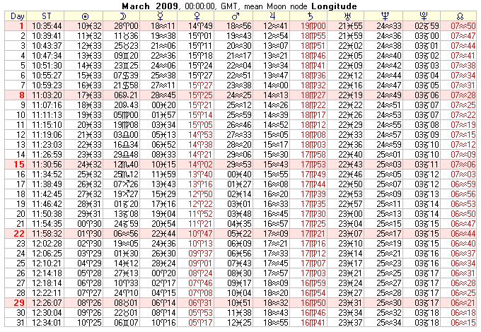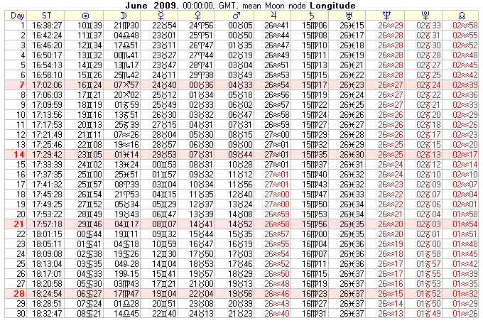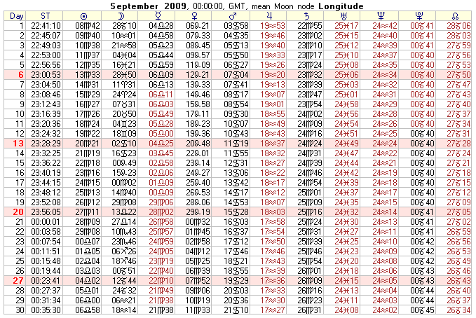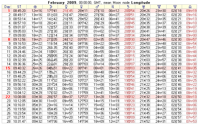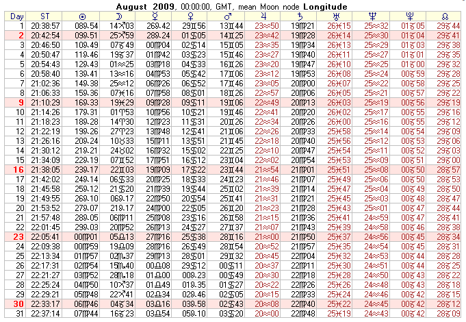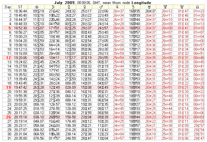 COMMUNITY SERVICE: 2009 Text Ephemeris (Midnight)