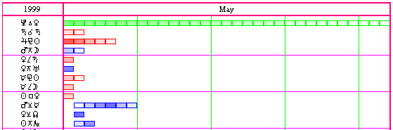 eclipse) or "(LE)" next to the transiting Sun to natal planet aspect.
