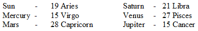 We see that the ascendant is in Saturn’s degree of exaltation.