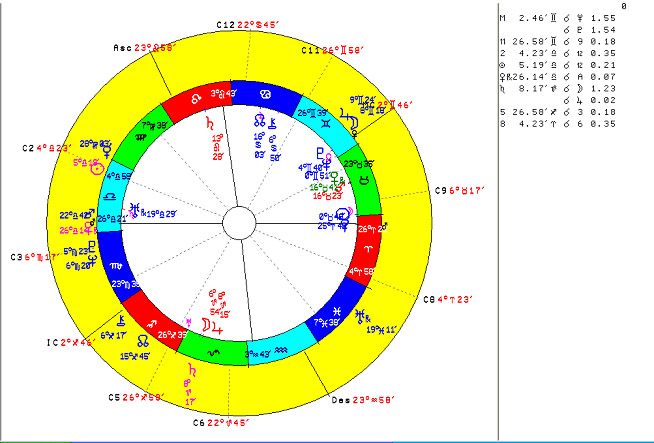 29 Pisces. Then, four minutes later, it will have risen to a mundane