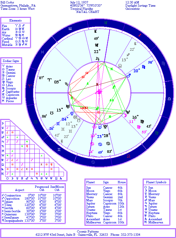 Bill Cosby's Natal Chart: Chart Wheel Style "Dark Purple"