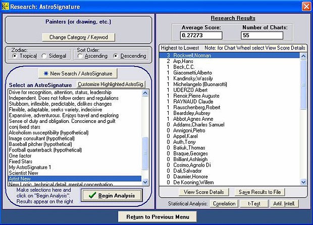 RESULTS:Shown below are the results of running this astroSignature for the 55 painters used in the study. The average score is 0.27273