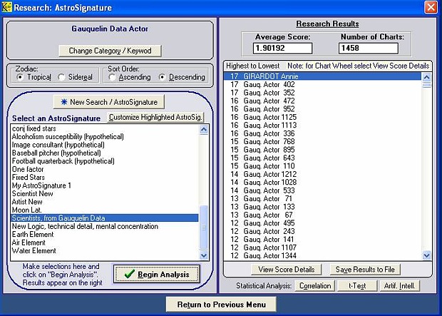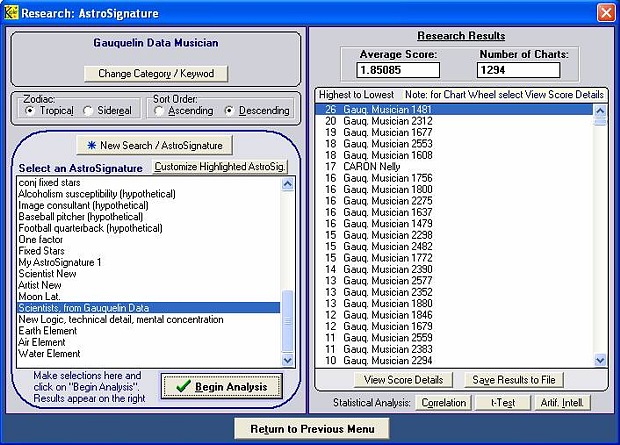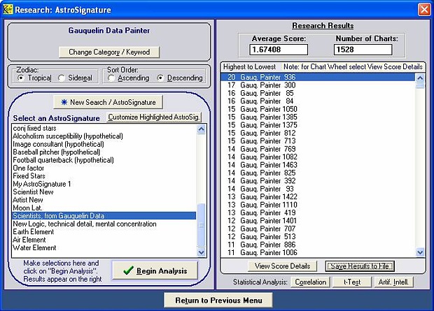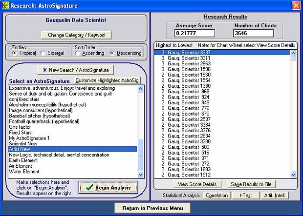 A TEST OF THE SCIENCE ASTROSIGNATUREHere is a summary of the average AstroSignature scores for the Science AstroSignature: