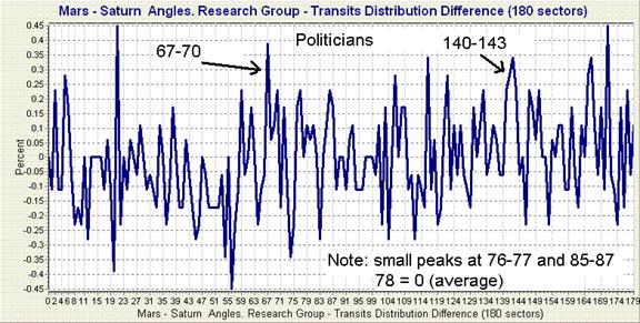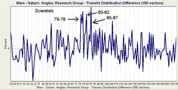 Copyright © 2010 All Rights Reserved by David Cochrane In the May-June, 1998 issue (Vol 40, #3) of the Astrological Journal (published by the Astrological Association of England) Theodor Landscheidt presents several findings regarding the distribution of planets in birth charts of famous people. One of his findings is that the angular distance of Mars and Saturn in the birth charst of 16,800 scientists and physicians is more often in a golden ratio aspect than would be expected by chance. Specifically, the following angles were found to occur more often these charts than would be expected by chance: 47.5, 55.6, 68.8, 85, 111.2, 137.5, 145.6, 158.8 and 175 degrees. For an explanation of Landscheidt's golden ratio aspects, see the article Reassessment of the Mars Effect. Although written over 12 years ago, there appears to be little follow-up on this study. Landscheidt reports that the data analyzed was gathered by Mulller at the University of Cologne in Germany. I added features to Sirius 1.2 astrology software to enable me to obtain improved graphs from earlier versions of Sirius to see how Mars-Saturn angles varied from the expected distribution in six groups of professional groups in the Gauquelin data: scientists, musicians, writers, politicians, military leaders, and painters. This data is included in Sirius and I did not attempt to find out if the data collected by Muller is available. If this data can be obtained an reanalysis of Muller's could be performed. All six professional groups in the Gauquelin data have birth dates ranging from the 1790's or 1800's to the 1920' to 1940's. The Sirius software allows the user to produce a distribution of a planetary angle over any period of time to represent the random distribution of the planetary period over that time period. I found that the specific dates used had little effect on the distribution as long as a range of 100 or more years was used. I used a range of 1800 to 1930 for this control group in the analysis. Note that creating a control group for astrological research is difficult in that the definition of the population from which the sample is collected is ambiguous given the uneven and non-normal distribution of birth dates through the time period. However, the full distribution of Mars-Saturn angles for 130 years used represents the likely distribution if births were equally spread across this time period and given the stability of this distribution and the deviations with very small orbs found in this study as described below, other definitions of a control group would very likely produce very similar results. Shown below in Figure 1 is the random distribution of Mars-Saturn angles the distribution of the scientists in the Gauquelin data collection. Angular distances are rounded to the nearest degree from 1 to 180. The average percent of charts at any degree is therefore 100/180, or 0.55. As expected from the much larger number of charts in the random distribution, the random distribution represented by the green line fluctuates less than the distribution of scientists as represented by the blue line. The random distribution is based on 130 years x 365 days, or over 47,000 Mars-Saturn calculations. ![]() To visualize deviations from the random distribution in another way, a graph of the percent difference between the scientists and the random distribution is shown in Figure 2 below. ![]() The Sirius software also lists the values for each degree so that the difference at each degree is known. Referring to this list, I noted the degrees that the graph in Figure 2 indicates that the Mars-Saturn angle occurs more often for scientists than for the random distribution. These angles are 76-78, 80-82, and 85-87 degrees. In this exploratory phase of research hard and fast rules are not used to determine at which angular distances the scientists and control group differ but salient peaks are fairly clear. In general the findings do not confirm Landscheidt's finding. The peak at 85 degrees is confirmed but overall the results do not closely agree with Landscheidt's findings. Of the three peaks identified in the graph, the peak at 76-78 degrees is most impressive to me because the graph stays very high across three degrees whereas the other two peaks extend for only two degrees and are pronounced only at a single degree. Note that in the line graph angular distances vary from 0 to 179 so the range of 76 to 78 degrees is actually a range of greater than or equal 76 to less than 79 degrees. Interestingly, a 3/14 aspect is 77.14 degrees and therefore is approximately in the middle of this range. In earlier research it was found that 14th harmonic aspects involving Saturn are more likely in the charts of scientists in the Gauquelin data (see The Gauquelin Data Revealed) . The current findings suggest that it may be especially the 3/14 aspect that is important for scientists. Shown in Figure 3, Figure 4, Figure 5, Figure 6, and Figure 7 are the percent difference in the charts of the other five professional groups in the Gauquelin data. ![]() ![]() ![]() ![]() ![]() Interestingly, four of the six professional groups have above average Mars-Saturn angles in the 76-78 degree range, which as mentioned above, is a 3/14 aspect. Painters have average scores in this range, and musicians have a dramatic decrease at 77 (which is 77 to 78 degrees), the center of these 3 degrees. These findings are difficult to interpret, but may be fairly consistent with the early study of the Gauquelin data (see The Gauquelin Data Revealed) which found that harmonics based on 11 occur more often in the charts of musicians. The 11-based harmonics are hypothesized to promote dynamic movement and restlessness. Music may be a natural outlet for people with this restless energy. The 3/14 aspect might represent a quiet and focused energy, almost a stillness. We can imagine children who become very restless thinking about an algebra problem and those who can focus on it v