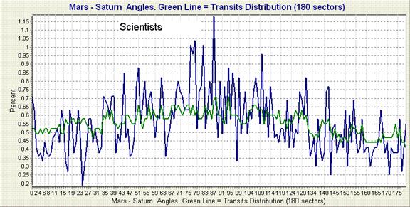 A Reanalysis of Theodor Landscheidt's Findings Regarding Mars-Saturn Angles in Birth Charts of Scientists Copyright © 2010 All Rights Reserved by David Cochrane In the May-June, 1998 issue (Vol 40, #3) of the Astrological Journal (published by the Astrological Association of England) Theodor Landscheidt presents several findings regarding the distribution of planets in birth charts of famous people. One of his findings is that the angular distance of Mars and Saturn in the birth charst of 16,800 scientists and physicians is more often in a golden ratio aspect than would be expected by chance. Specifically, the following angles were found to occur more often these charts than would be expected by chance: 47.5, 55.6, 68.8, 85, 111.2, 137.5, 145.6, 158.8 and 175 degrees. For an explanation of Landscheidt's golden ratio aspects, see the article Reassessment of the Mars Effect Although written over 12 years ago, there appears to be little follow-up on this study. Landscheidt reports that the data analyzed was gathered by Mulller at the University of Cologne in Germany. I added features to Sirius 1.2 astrology software to enable me to obtain improved graphs from earlier versions of Sirius to see how Mars-Saturn angles varied from the expected distribution in six groups of professional groups in the Gauquelin data: scientists, musicians, writers, politicians, military leaders, and painters. This data is included in Sirius and I did not attempt to find out if the data collected by Muller is available. If this data can be obtained an reanalysis of Muller's could be performed. All six professional groups in the Gauquelin data have birth dates ranging from the 1790's or 1800's to the 1920' to 1940's. The Sirius software allows the user to produce a distribution of a planetary angle over any period of time to represent the random distribution of the planetary period over that time period. I found that the specific dates used had little effect on the distribution as long as a range of 100 or more years was used. I used a range of 1800 to 1930 for this control group in the analysis. Note that creating a control group for astrological research is difficult in that the definition of the population from which the sample is collected is ambiguous given the uneven and non-normal distribution of birth dates through the time period. However, the full distribution of Mars-Saturn angles for 130 years used represents the likely distribution if births were equally spread across this time period and given the stability of this distribution and the deviations with very small orbs found in this study as described below, other definitions of a control group would very likely produce very similar results. Shown below in Figure 1 is the random distribution of Mars-Saturn angles the distribution of the scientists in the Gauquelin data collection. Angular distances are rounded to the nearest degree from 1 to 180. The average percent of charts at any degree is therefore 100/180, or 0.55. As expected from the much larger number of charts in the random distribution, the random distribution represented by the green line fluctuates less than the distribution of scientists as represented by the blue line. The random distribution is based on 130 years x 365 days, or over 47,000 Mars-Saturn calculations. ![]() To visualize deviations from the random distribution in another way, a graph of the percent difference between the scientists and the random distribution is shown in Figure 2 below. ![]() The Sirius software also lists the values for each degree so that the difference at each degree is known. Referring to this list, I noted the degrees that the graph in Figure 2 indicates that the Mars-Saturn angle occurs more often for scientists than for the random distribution. These angles are 76-78, 80-82, and 85-87 degrees. In this exploratory phase of research hard and fast rules are not used to determine at which angular distances the scientists and control group differ but salient peaks are fairly clear. In general the findings do not confirm Landscheidt's finding. The peak at 85 degrees is confirmed but overall the results do not closely agree with Landscheidt's findings. Of the three peaks identified in the graph, the peak at 76-78 degrees is most impressive to me because the graph stays very high across three degrees whereas the other two peaks extend for only two degrees and are pronounced only at a single degree. Note that in the line graph angular distances vary from 0 to 179 so the range of 76 to 78 degrees is actually a range of greater than or equal 76 to less than 79 degrees. Interestingly, a 3/14 aspect is 77.14 degrees and therefore is approximately in the middle of this range. In earlier research it was found that 14th harmonic aspects involving Saturn are more likely in the charts of scientists in the Gauquelin data (see AstroSignatures in the Gauquelin Data Revealed). The current findings suggest that it may be especially the 3/14 aspect that is important for scientists. Shown in Figure 3, Figure 4, Figure 5, Figure 6, and Figure 7 are the percent difference in the charts of the other five professional groups in the Gauquelin data. ![]() ![]() ![]() ![]() ![]() Interestingly, four of the six professional groups have above average Mars-Saturn angles in the 76-78 degree range, which as mentioned above, is a 3/14 aspect. Painters have average scores in this range, and musicians have a dramatic decrease at 77 (which is 77 to 78 degrees), the center of these 3 degrees. These findings are difficult to interpret, but may be fairly consistent with the early study of the Gauquelin data (see AstroSignatures in the Gauquelin Data Revealed) which found that harmonics based on 11 occur more often in the charts of musicians. The 11-based harmonics are hypothesized to promote dynamic movement and restlessness. Music may be a natural outlet for people with this restless energy. The 3/14 aspect might represent a quiet and focused 