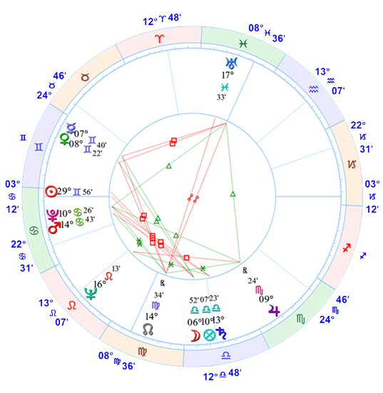 Copyright © All Rights Reserved by Aleksandar Imsiragic INTRODUCTIONAstrology is certainly a divine language, as the symbols it uses are universal and all-pervading, describing every corner of the Universe and events within It. Astrology gives answers to questions we raise and, most importantly, it describes the laws by which all things come into existence. Once you know this language, which is the law, you gradually come to know that you are able to see through the apparent phenomenal forms and reach the underlying intelligence at the basis of everything. Astrology enables you to be in contact with that knowledge and the events which are seemingly invisible. You can literally watch a new, huge Universe unfold in front of you, something of which most people are simply not aware. SYMBOLISM IN THE HOROSCOPE OF AN ASTROLOGERIn the horoscope of an astrologer, astrological symbolism is represented by Uranus (the main indicator of symbols or language through which astrology sees). In the case of my horoscope, Uranus is in the third house (the way of thinking) and in addition it is sextile Neptune in the fifth house. As the fifth house represents love, entertainment and art in general, Neptune positioned here speaks about love (the fifth house) of film (Neptune), and its sextile with Uranus (astrology) in the third house (the way of thinking). This combination reflects the ability to enjoy the translation of events unfolding in film into astrological symbols. The most fascinating thing is that when I use one aspect to describe an event in the film, then all the other events connected with those planets start to fit perfectly in the whole story, as if it was a real life situation and not the creation of the director, completely conceived by a human mind. THE WRITING TABLE: A FILMThe film takes place in the present time. At the beginning of the movie, the leading actor comes across an antiquity shop while walking with his girlfriend. In the shop, he discovers an old writing table from the 19th century. The writing table strongly attracts his attention and he decides to buy it. For some reason, the table is so fascinating to him, he even wakes up in the middle of the night and starts polishing it. While arranging the table, he discovers a secret compartment and several love letters in it, written long ago and not read by anyone until now. He reads them and understands that they were written by a girl to whom the writing table belonged 150 years ago. She was writing them to an imagined lover, giving him her heart, and grieving over a marriage in the near future to a man she does not love, but whom her father thinks to be appropriate for her... At this point I began to create a picture of planetary aspects necessary in the life of a man who came in touch with the writing table containing secret love letters. Of course, it is logical to suppose Venus (love) to be in conjunction with Mercury (letters), especially so in the twelfth house (secrets), but in a sign which could indicate a table. The sign could be Virgo (office table), Libra (flat table or lady's table) but also Gemini, which represent the tables of all kinds. In this particular case, Gemini would strongly emphasize letters and communication. I still can't decide between conjunction of Venus and Mercury in Virgo or Gemini... The next scene solves the dilemma: Scott (the name of the young man in the movie) visits his mother the next day and tells her what he had found in the table. He does not tell it to his girlfriend, but only to his mother. Interesting! His mother is youthful and cheerful. She is learning foreign languages. From their conversation we find out her origin is Italian... She tells him, by the way, that instead of having a big wedding, he could spend the money for a trip around the world with his fiancée Deborah. "But I do not want to travel around the world", he says. This sentence removes the last doubt: he is certainly a Cancer Ascendant, as this statement shows typical Cancerian need for home and lack of desire to travel (Cancer - home, house, family...). His confession to his mother (Cancer) only strengthens this concept. This confirms my hypothesis that his twelfth house is Gemini, with Venus (love) and Mercury (letters) in conjunction. "Of course", I conclude, "Mercury and Venus in the 12th house are secret, hidden letters, which are in the table (Gemini), and furthermore in the compartment of the table (Gemini additionally represents compartments). The letters had been left there long ago, from an age that has passed (Gemini should be intercepted: that is, the cusp of the twelfth house should begin in Taurus, so that no house begins in Gemini). That means the Ascendant should be in the beginning of Cancer so that Gemini could be intercepted at the latitude where he was born (Boston, Massachusetts because the action of the movie is unfolding there). "In that case", I calculate quickly in my mind, "the fourth house should begin somewhere in Virgo, which would also represent his mother, and the ruler of that house would be Mercury, which we already know is placed in the twelfth in conjunction with the Venus. Yes, of course. His mother is of an Italian origin (the ruler of the fourth house, representing the mother, is Mercury, positioned in Gemini (and the larger part of Italy is ruled by Gemini). Mercury (that is, the ruler of mother in this case) is conjunct Venus (he tells her about the love letters), and she herself likes traveling (Mercury in Gemini with Venus). This is why she suggests an idea to him about how to organize his wedding traveling (Mercury conjunct Venus).""No doubt - that is it!" I infer with certainty now, with the feeling every painter has when he makes his first steady strokes of the picture. TIMELESS COMMUNICATION:"Why don't you try to answer her letters", said the mother in a cheerful voice. "I think it would be great, if it worked out!" Only a mother represented by such a merry combination of pl