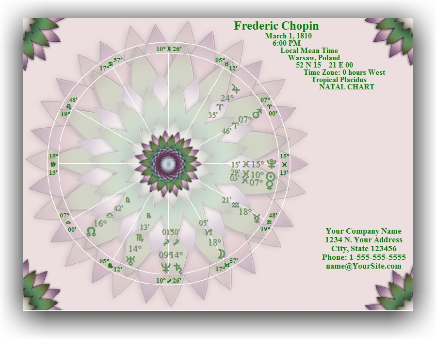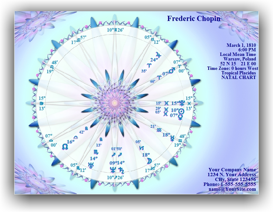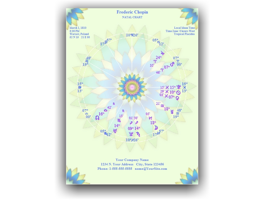 Cosmic Patterns Software is once again the first in Astrology Software Industry that offers the amazing Art Wheels!! These Art Wheels were created for Kepler and Sirius lovers! These stunniing beautiful wheels are simply jaw-dropping beautiful works of art that delight and inspire! This art wheel collection includes a wide variety of themes and styles. Throughout the entire collection, the most consistent quality is the subtle and exquisite colors. The Pastel Collection of 138 art wheels adds a new dimension to your Kepler or Sirius Superb Astrology Software, and will delight your clients and customers with an inspiring and uplifting work of art! You can export the Art*Wheels pastel Collection wheels in .PNG, . JPG, .BMP, .TIFF, and .PCX in resolutions from 30x40 pixels to 1535x2047 pixels in RGB colors, Black and White, and Gray-Scale. Also you can generate .PDF files with screen resolution (low ress). Add this Pastel Collection of Art Wheels to your Kepler or Sirius program. This collection adds a new dimension to the services that you can provide to your clients, friends, and family. Here are just 12 Lanscape and 12 Portrait screenshots of the 138 Art*Wheel Pastel Collection, Click on the thumbnails below to pop-up a .JPG sample. Landscape Samples