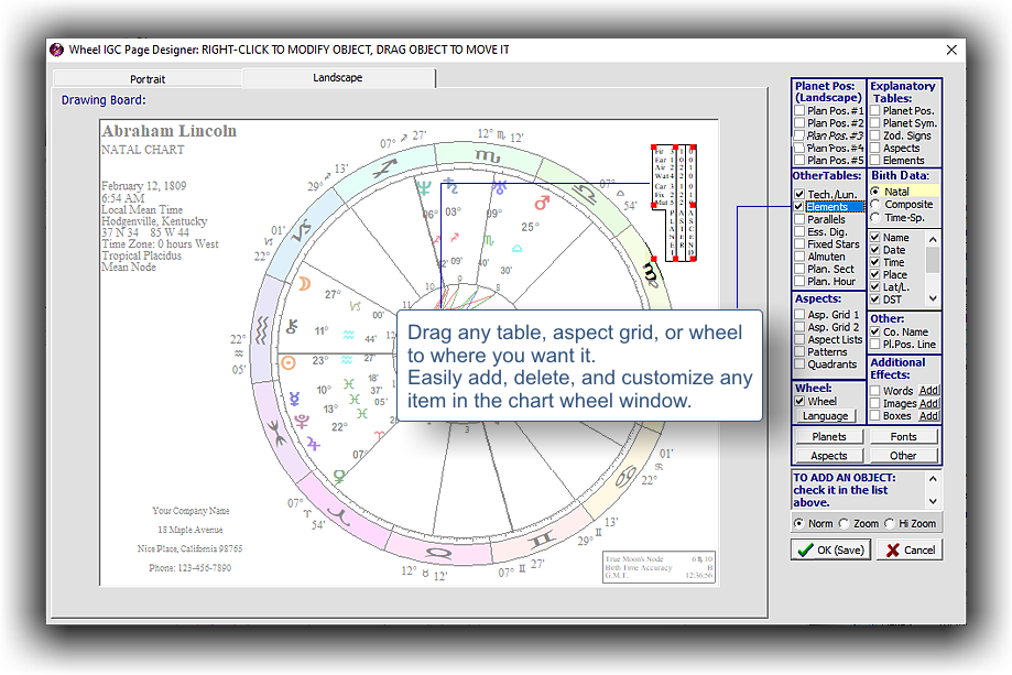 Most astrologers and students of astrology spend a lot of time looking at chart wheels. We often think of a chart wheel as something fixed and we can look at a chart wheel on the computer screen or we can print it out, and we have the same chart wheel. However, what if a chart wheel on the screen was interactive and flexible so you could click once to put Chiron in the wheel and click again to remove it? It would be nice if we could interact with the chart wheel so we could place an asteroid in the wheel to see where it is without having to place it in the wheel permanently. We might like to switch between the Mean Node and True Node, or between the ancient and modern formula for the Part of Fortune without having to make the selections, view the wheel, and then go back and customize the wheel again to set it back to the settings that you normally prefer. In Kepler you can do all of this! Browsing through the wheel styles is also fun because you see the actual chart wheel as you do this rather than a little thumbnail image of it. The Page Designer feature provides real drag-and-drop capability. If you are not familiar with computer lingo, that means you can visually move, add, and remove tables, aspect grids, etc. to a chart wheel. Even if you feel that you are not as good as the average child in your ability to use a computer, you will find that you can easily customize the chart wheel. For a more thorough introduction to selecting and customizing chart wheels in Sirius watch the 42-minute video. For even more information on customizing wheels, watch the 35-minute video on advanced customizing features. Also keep in mind that you do not need to watch these videos to understand how to select wheels and customize wheels. The procedure is intuitively obvious. The videos are available in case you want additional information and you will probably learn some nice "tricks" and features that you might otherwise overlook if you watch the videos. |