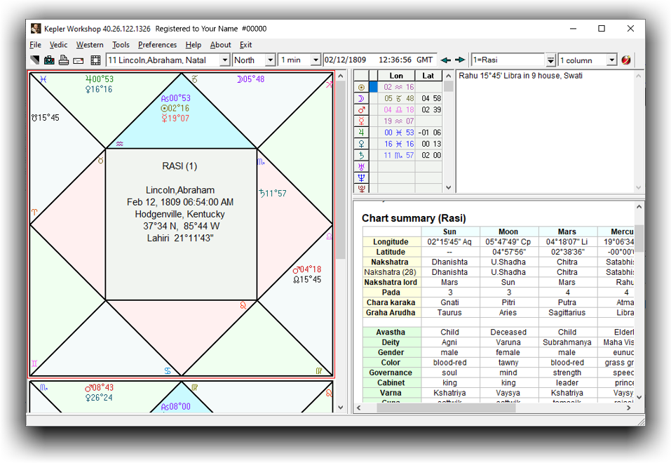 The North Indian and South Indian Wheel styles can be selected with many options, such as the ability to use glyphs or the 2-letter abbreviations, include the chara karaka and bhava arudha, and the 3 outer planets if desired. The vargas (navamsa chart, saptamsa chart, etc.) can be selected and viewed very easily, along with both basic and and advanced Vedic astrology methods. Also, the Nakshatra Wheel is a unique and beautiful innovation in Sirius. Learn More > |