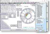 A very large variety of chart wheels, including small wheels with choices of aspect tables, many kinds of planet listings and additional information, ability to add asteroids, have arabic parts, fixed stars, or midpoints in a second ring around the wheel, put asteroids in the wheel, Two Wheel, Three Wheel, Four Wheel, BiWheel, TriWheel, QuadWheel, Wheel Patterns, a Popup Wheel while looking at other reports, and much more. The Art Wheels are works of art that both astrologers and non-astrologers love. The features are sophisticated and extensive, and yet very easy to use. For example, planetary patterns are available for 3-planet and 4-planet symmetrical astrology and Huber astrology methods. Learn More >