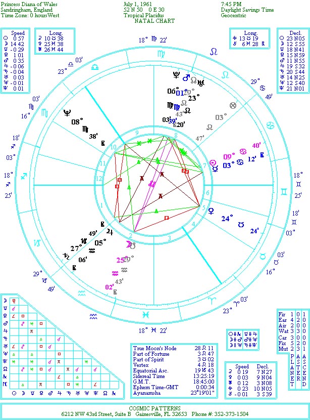 Princess Diana's Natal Chart: Chart Wheel Style "Simple White"